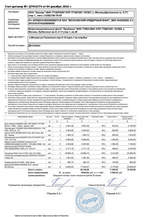 Пожертвование согласно ст.582 ГК РФ. Без налога (НДС)