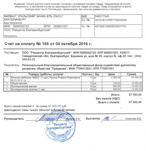 Пожертвование согласно ст.582 ГК РФ. Без налога (НДС)