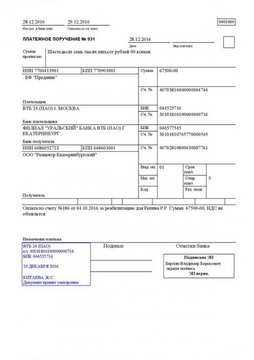 Оплачен один из курсов реабилитации Ромы Репина в "Реацентре Екатеринбургский"