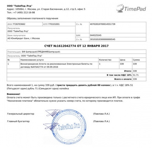 Оплачена комиссия за услуги сервиса "Таймпэд", помогавшего нам с организацией лекций в ноябре и декабре