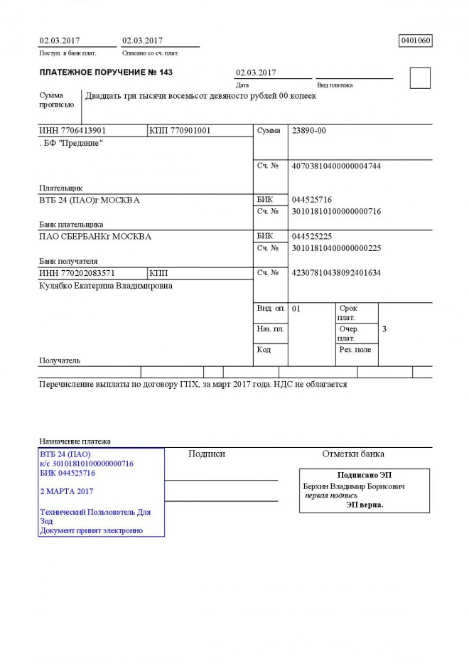 Переведены средства за расшифровку лекций в феврале 2017 г. Екатерине Кулябко