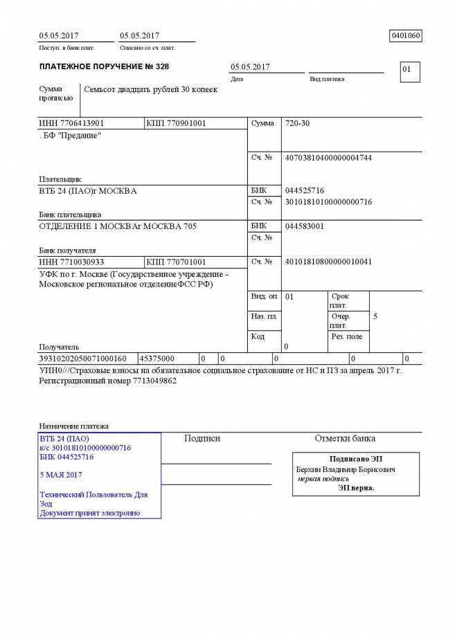 Перечисление налогов и взносов за апрель 2017 года