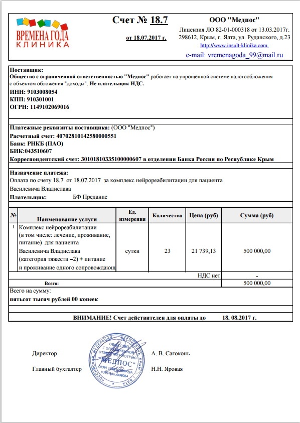 Оплачен курс нейрореабилитации Влада Василевич в центре "Времена года"