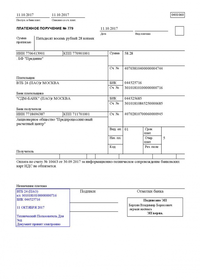 Оплачена комиссия платежной системы "Uniteller"" за сентябрь 2017 года