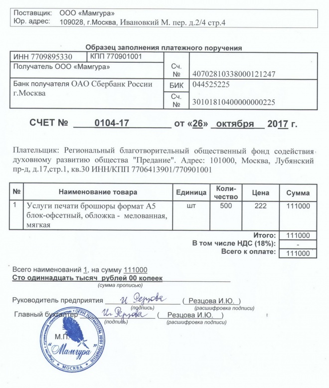 Оплачен счет за печать сборника медицинских статей о лечении миелодисплазии у детей