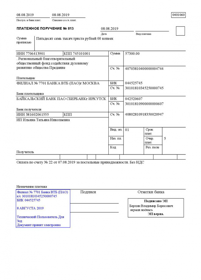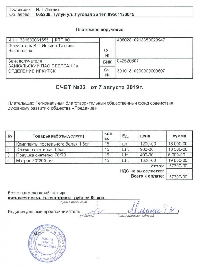 Оплачена покупка постельных принадлежностей для раздачи пострадавшим от наводнения в Иркутской области