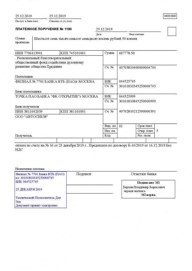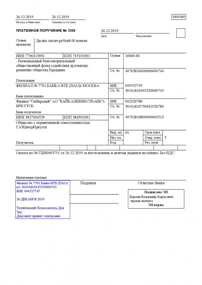 Оплачены счета за покупку машины скорой помощи и ремонт крыши (аванс) городской больницы г. Тулуна