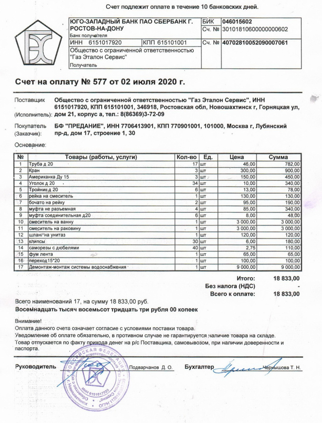 Оплачен счет за стройматерилы и работы по замене системы холодного водоснабжения в квартире одинокой многодетной мамы Елены Радченко