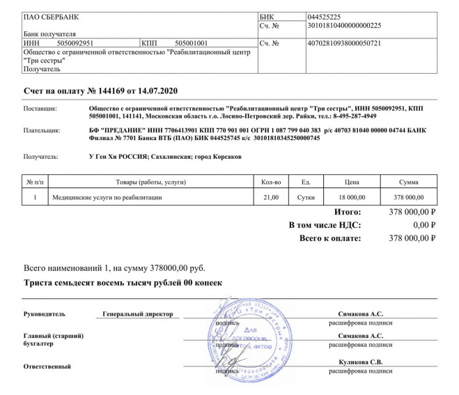 Оплачен курс реабилитации Ген Хи У в центре "Три сестры"