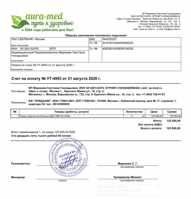 Пожертвование согласно ст.582 ГК РФ. Без налога (НДС)